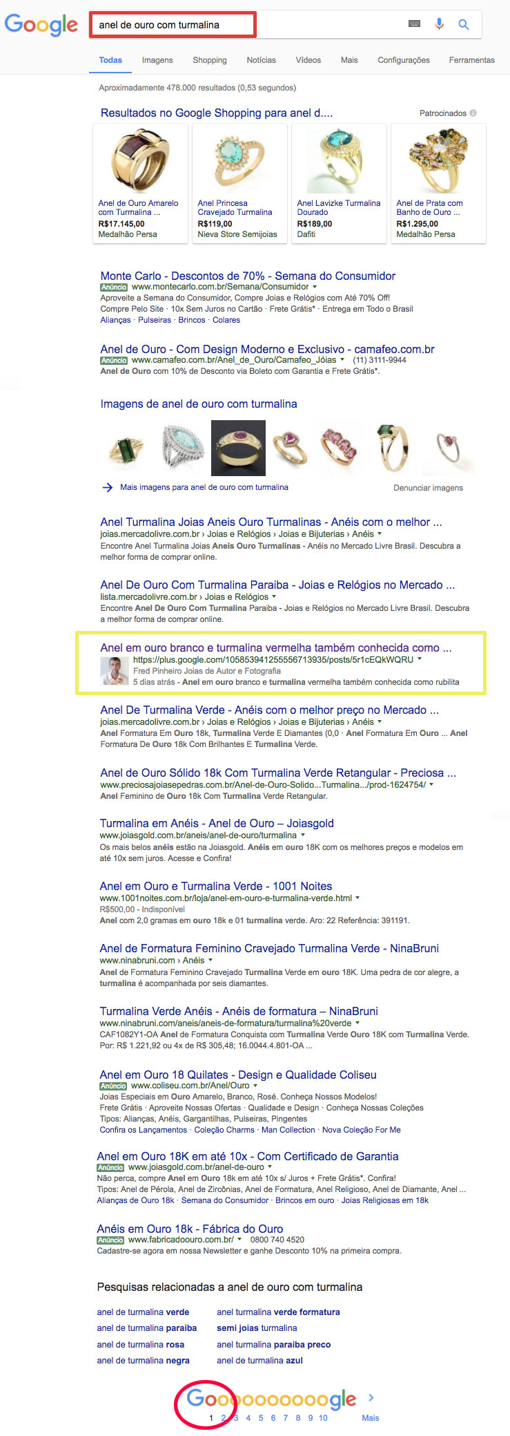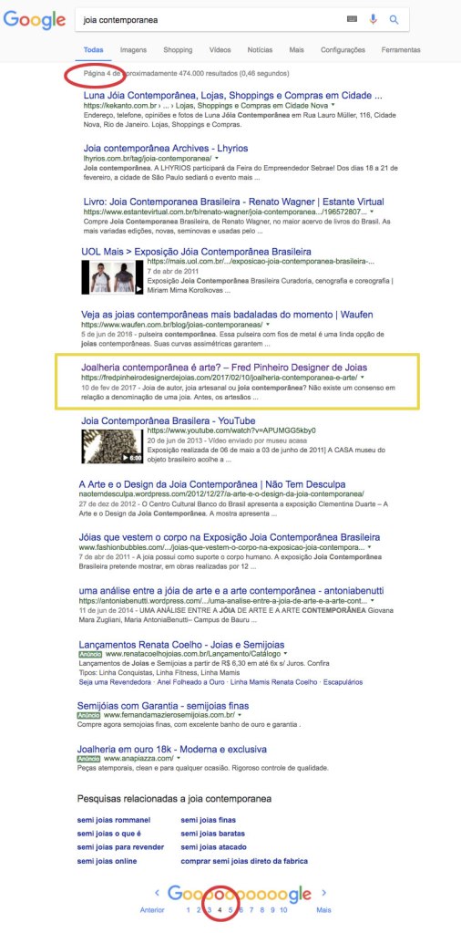 Entramos aí numa disputa mais feroz no mercado, porque o Google dá prioridade para quem chegou antes e vem produzido conteúdo sistematicamente. Alguns designers de joias estão fazendo um trabalho de presença digital há muito mais tempo, garantindo maior relevância na indexação do Google.